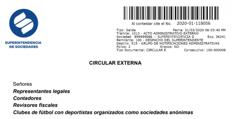 La superintendencia de sociedades establece un nuevo plazo para remitir la información financiera del año 2019, este nuevo plazo es hasta el dia 30 de abril de 2020. Circular_100-000006_de_31_de_marzo_de_2020Download Circular_100-000006_de_31_de_marzo_de_2020-1