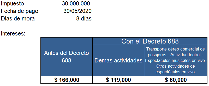 El día de ayer 22 de mayo de 2020 se expidió el Decreto Legislativo 688, en el cual se indica que la tasa con la que la Dian liquida el interés, disminuirá hasta el 30 de noviembre de 2020.