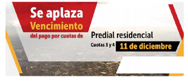 La Secretaría Distrital de Hacienda informa que, debido a la alta demanda por los servicios informáticos de su plataforma, tras el levantamiento de la contingencia, tomó la decisión de aplazar el vencimiento de la tercera cuota del impuesto Predial residencial, mediante Resolución SDH- 000500 de 2020, para el viernes 11 de diciembre, fecha en la...Read More