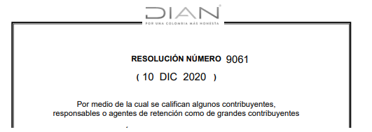 Con la resolución 9061 de 10 de diciembre de 2020 la Dian pública quienes tienen la calidad de Grandes contribuyentes para los años 2021 y 2022, estos también adquieren la calidad de agentes retenedores de IVA