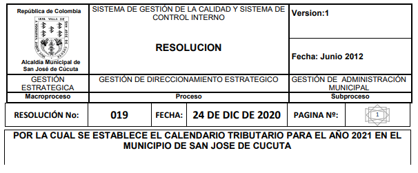 Con la resolución 019 del 24 de diciembre de 2020, el Municipio de cúcuta define el calendario tributario 2021. La fecha máxima para la presentación y pago del impuesto de industria y comercio del año gravable 2020 es el 31 de mayo de 2020. Las personas jurídicas que se acojan y mantengan vigente su inscripción...Read More