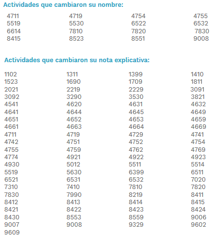 Actividades que cambiaron su nombre y cambiaron su nota explicativa