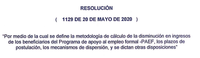 La resolución 1129 expedida el día de hoy 20 de mayo, por el Ministerio de Hacienda y crédito Público aclara el tema de la postulación al aporte estatal del PAEF (Programa de Apoyo al Empleo Formal) El aporte para cada empleado postulado será de $351.000. Aplica para: Personas naturales con 3 o más empleados en...Read More