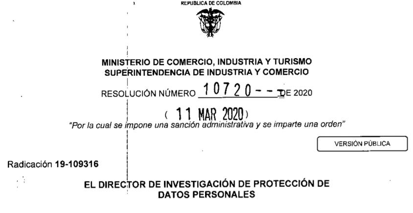 Con la Resolución 10720 de 2020 La Superintendencia de Industria y Comercio Sanciona a ScotiaBank Colpatria por $356.070.000, toda vez que encontró demostrado plenamente que dio tratamiento de una información personal de uno de sus clientes sin contar con su autorización previa, expresa e informada. Adicionalmente, ordena adoptar e implementar un procedimiento interno con el...Read More