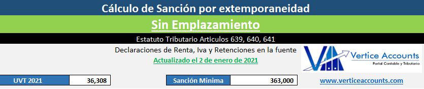 Descarga este liquidador de la sanción por extemporaneidad, en la hoja 1 puedes liquidar la sanción antes del emplazamiento, y en la segunda hoja la liquidación corresponde cuando has recibido el emplazamiento. Actualizado el 2 de enero de 2021Read More